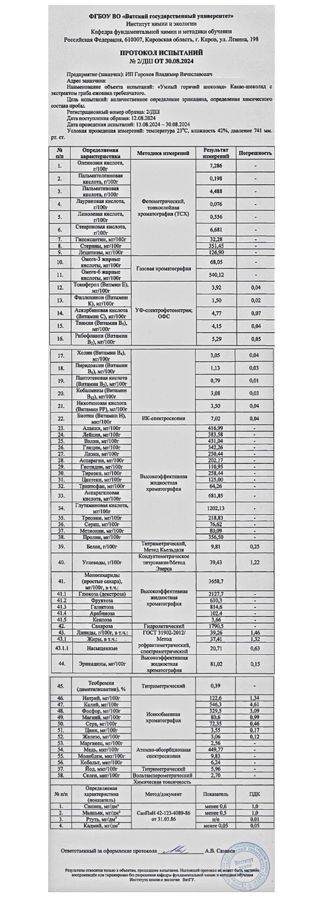 В лаборатории Вятского государственного университета мы провели исследование состава одного из наших бестселлеров: