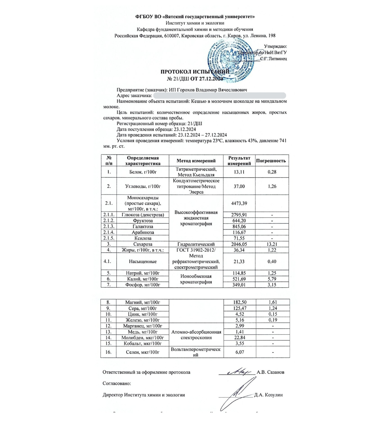 А что, если шоколад может не только радовать вкусом, но и реально работать на ваше здоровье? Мы отправили «Кешью в молочном шоколаде на миндальном молоке» на исследование в Вятский Государственный университет, и результаты говорят сами за себя: этот шоколад заряжает мозг, укрепляет сердце и даже помогает коже оставаться молодой. Как? Сейчас расскажем (полный протокол анализа в конце статьи).