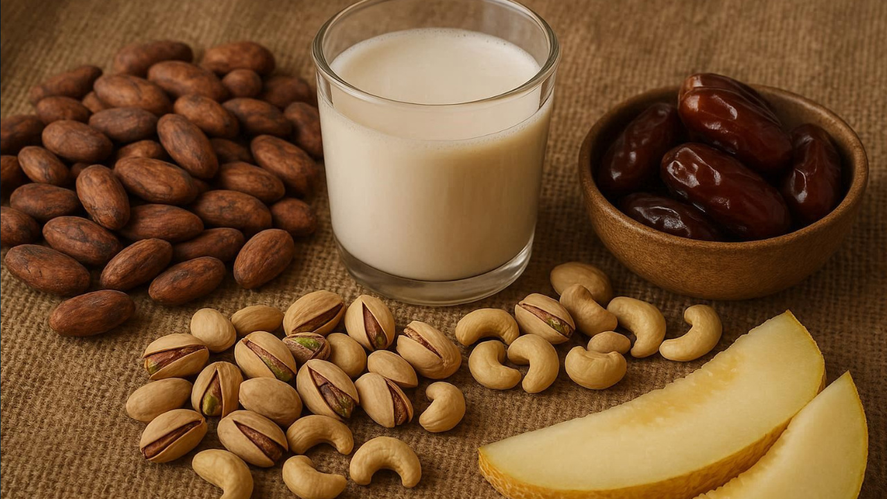 Именно это сочетание делает начинку многослойной: фисташка звучит громко и насыщенно, кешью смягчает и добавляет кремовости, финики дают сладкий и слегка фруктовый штрих, а миндальное молоко связывает все воедино.