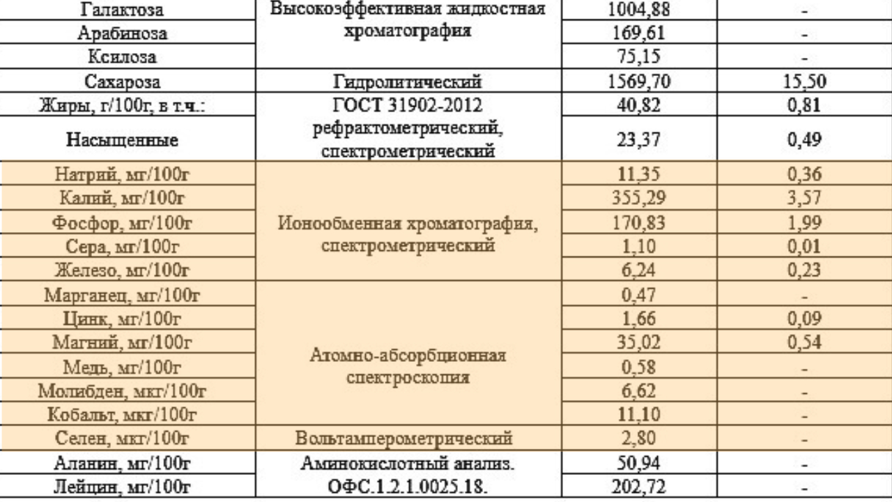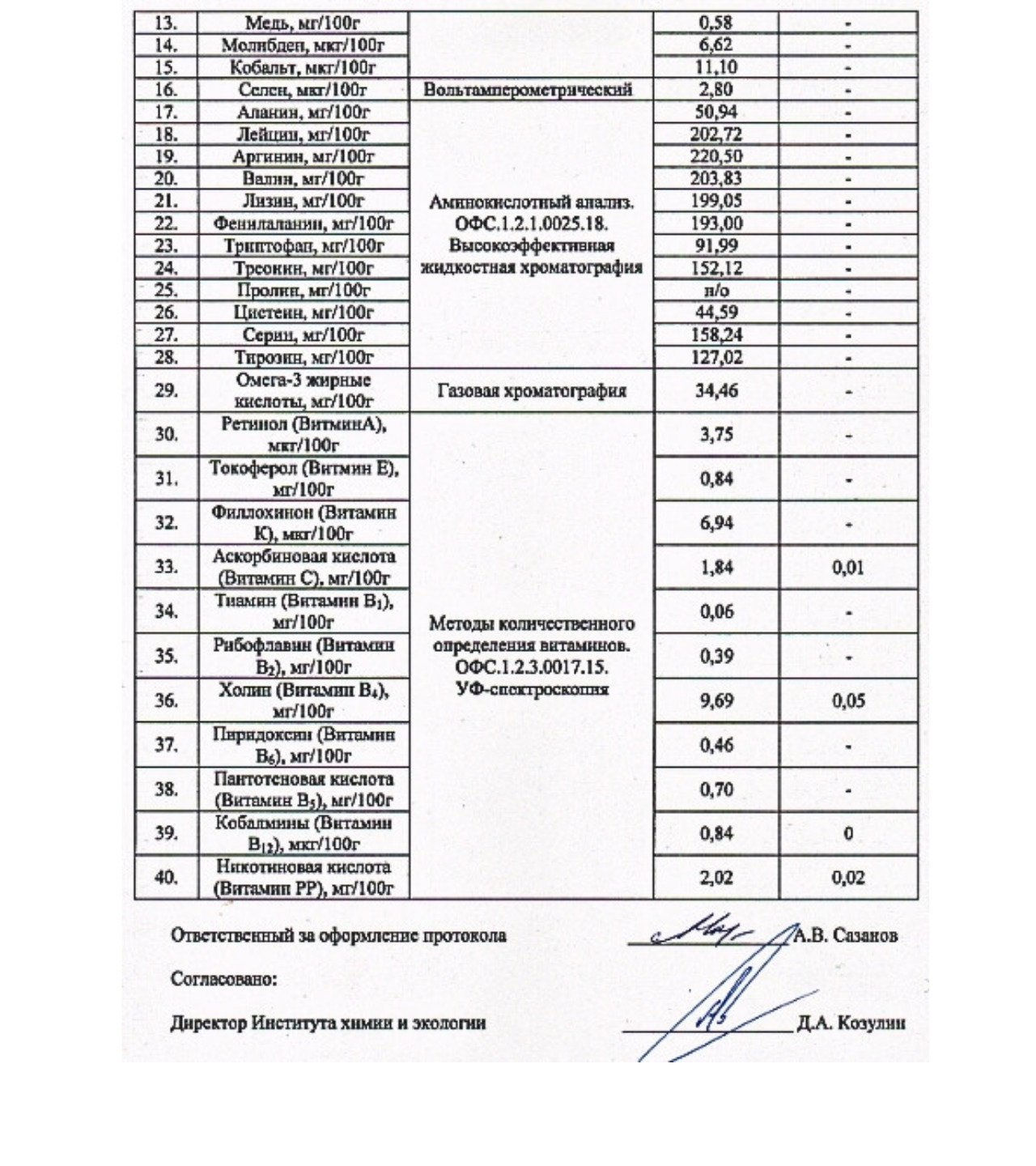 Но настоящие открытия начинаются, когда мы переходим к минеральному и витаминному составу.